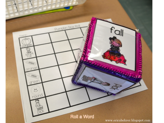 Another favorite of my students is Magnify Tiny Words. This one is pumpkin themed and they have to record the word under the picture the word describes.