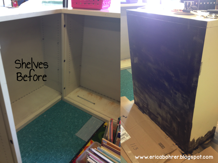 Did you notice all the black in my classroom? That was me painting everything! I have a matching issue. I like everything to match. Those ugly gray shelves (an office closing purchase my dad procured for me) turned into a stunning black bookshelf oasis.