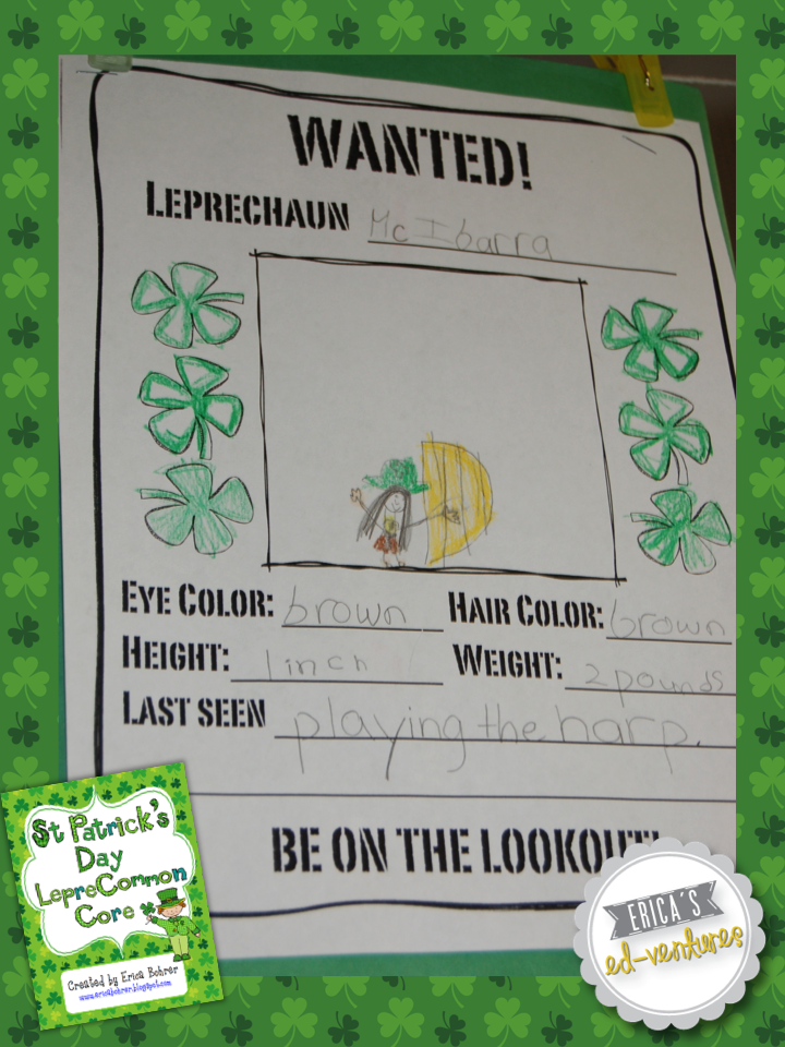 Love the wanted posters. We set our traps today and now we wait to see if we have caught a leprechaun in Monday.
