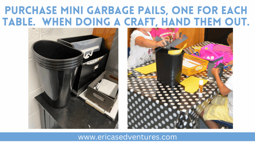 - Place mini garbage pails in an easy to access area for students to grab and use!