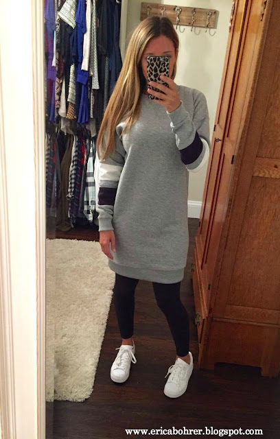 Here is my weekend look! I love long sweatshirts and this was another one that I got in the summer during the Nordstrom sale. It is a US size 2 and I would say fits true to size. I am so excited it is finally cool enough for me to wear it. The leggings are LuLaRoe and they are sooo soft.
