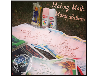 In the packet, I give you two options for math manipulatives: 1. Print and punch them. 2. Spray paint lima beans. I did both and I have to say that the students preferred the lima bean counters and seemed to be more focused, plus they were easier for them to grab.