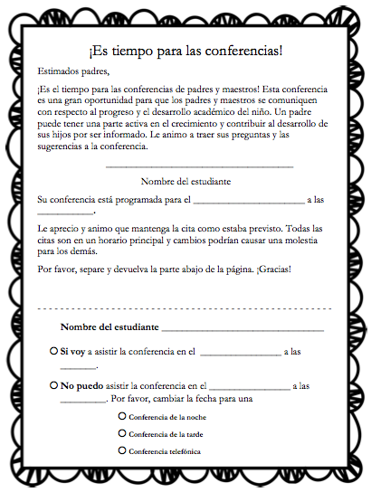 I am jealous of those of you that have off for Thanksgiving week. We have a full day on Monday, with night parent-teacher conferences. Then on Tuesday and Wednesday, we have half days of school and conferences after that. This is my first year with some ELL students and my conference RSVPs were not coming back. Thankfully, I asked my blog buddies for help. Rachel Lamb found me this English/Spanish form. Now, let’s just hope the parents don’t come in thinking I speak Spanish.