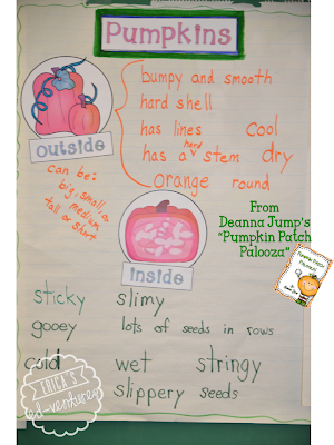 Last year, I immersed the students in all things pumpkin. We touched pumpkins on the inside and outside (Cara Carroll & Deanna Jump’s ideas). We created many anchor charts.