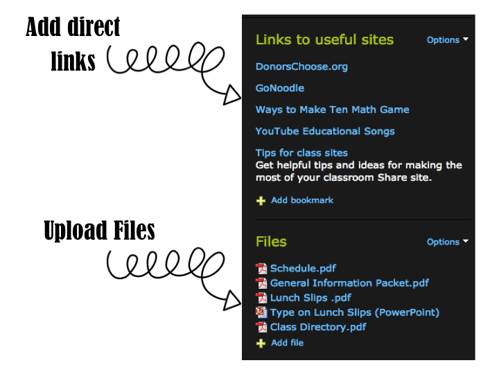 The site is way more than just photos. You can add direct links to blog posts and upload files that you want to share with parents.