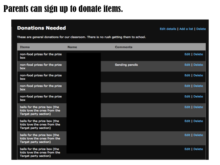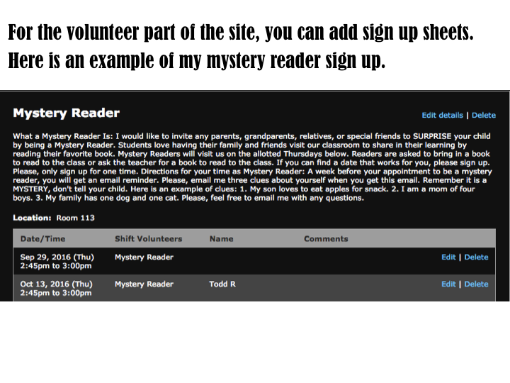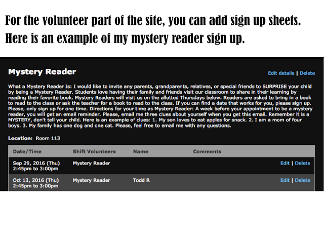 Another tip I suggest is encouraging your grade level teammates to set one up, too. Then take some time together and go through and put in calendar dates and set up the volunteer forms. My team sat with three computers and me at a laptop, we put in our volunteer sign up lists and a few important dates. It was great to have more heads together to come up with ideas for the donation and class party lists.
