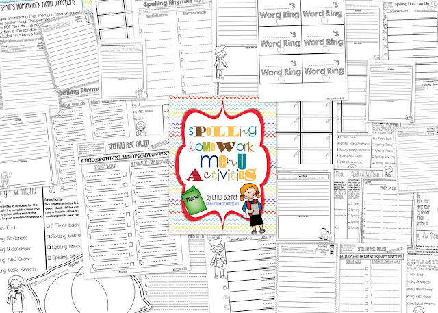 I am so much more focused when I have a deadline! I was determined to get this Spelling Homework Menu Packet done before the sale was over. I made it! Though, it was already half finished and sitting on the back burner for months. I am so excited that it is done and ready for me to use in September. My students love picking their own spelling homework assignments and I am sure they will love this packet. Click the image above to check it out on Teachers Pay Teachers and snag it while it is on sale. Below is a sample activity from the packet. I also think these would make easy centers or great early finisher activities.