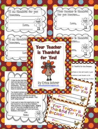 First up is my Your Teacher is Thankful for You! packet. It comes with two versions of the teacher certificates and one student writing certificate.