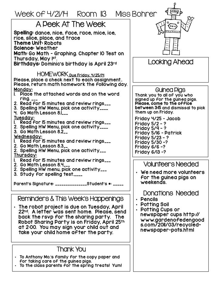 I love the robot pictures! I imagine that students love when their parents come to the sharing party!