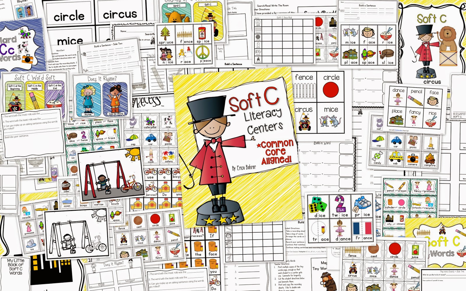 I made this Soft C Literacy Center Packet to use this week. The packet is temporarily listed at $2.50! Snag it now before it goes back up to full price! Don’t you love the cute ring master on the cover Mel made me? I love Graphics from the Pond. Mel is seriously so talented.
